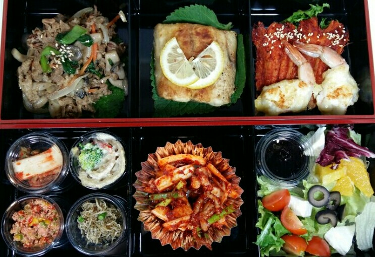오늘의 조식도시락 살짝 보여드립니다. 찬합에 제공되어 일회용 용기가 좀 그런자리에서는 추천드립니다.