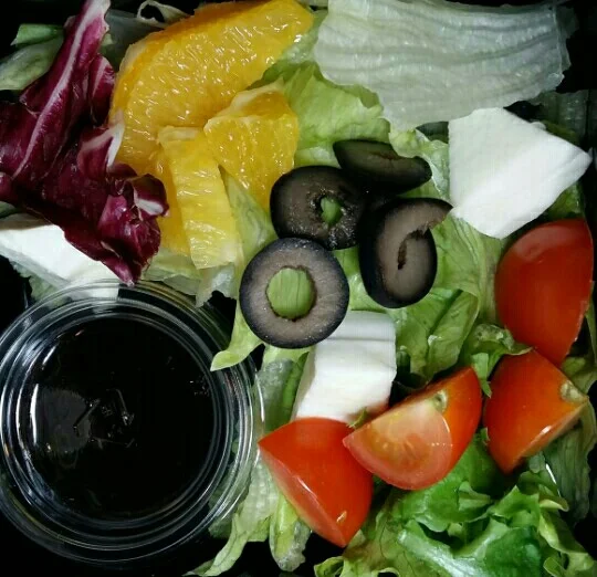 발사믹 올리브오일 드레싱을 뿌려드시도록 작은 용기에 담아드렸습니다.