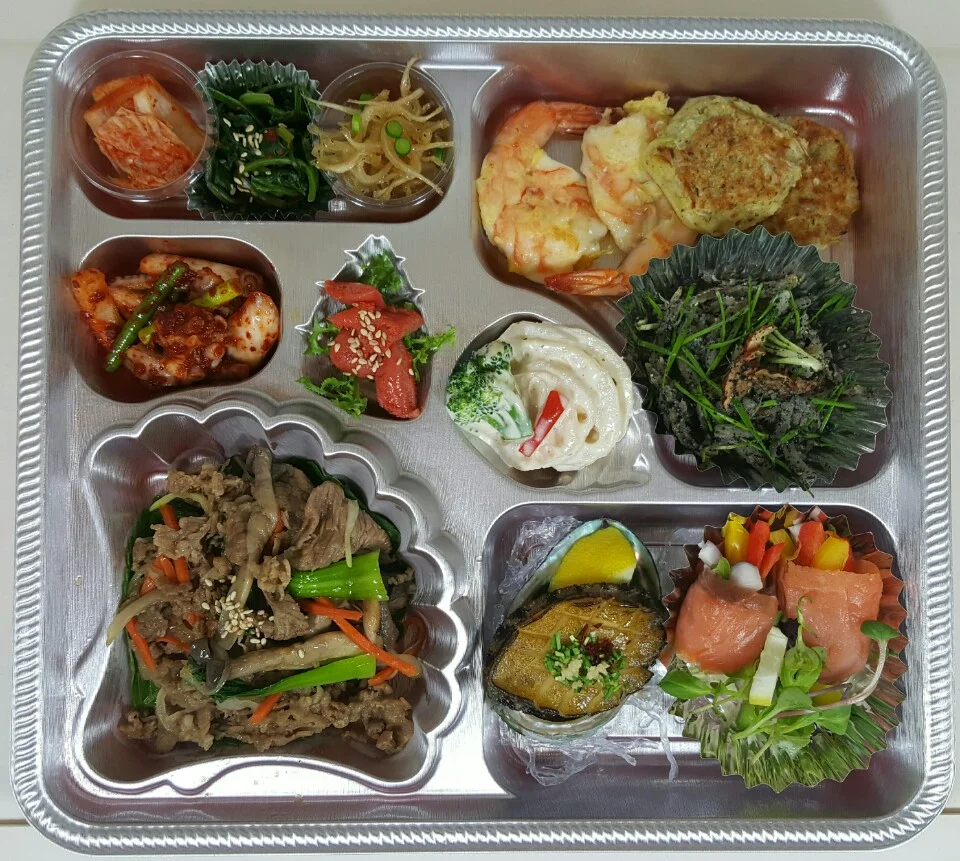 모듬3 도시락하면 전복이 들어간 해물 샐러드와 부채살 스테이크가 구성되어 있는 고급도시락입니다. 전복 버터구이와 스테이크 시즈닝을 곁들인 새우는 샐러드와 함께 곁들이시고 우메보시를 넣은 특제 소스를 뿌린 부채살 스테이크도 정말 맛이 좋답니다. ^-^ 오늘 모듬3 단체 주문 사진 공유합니다.
